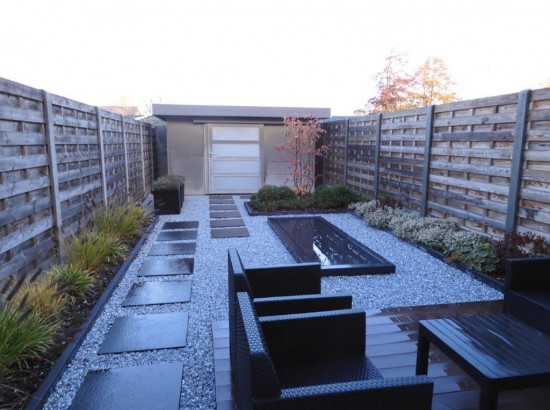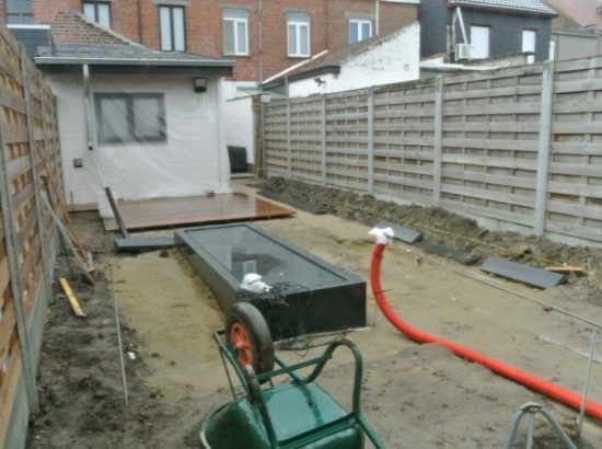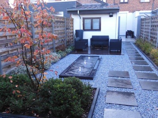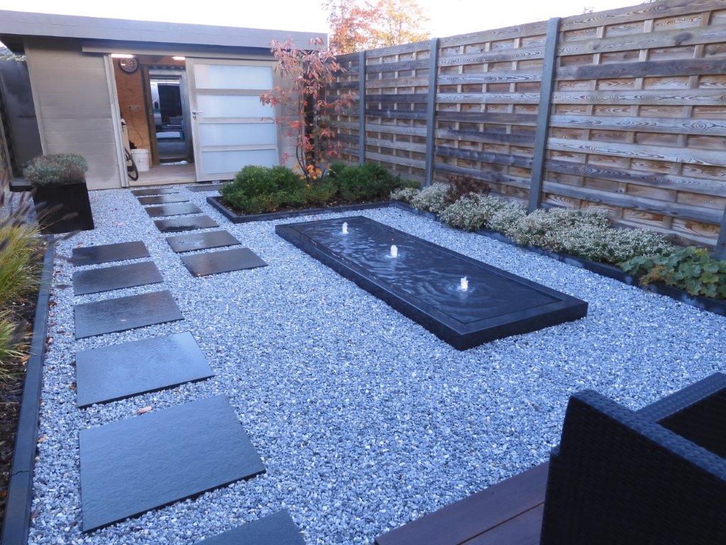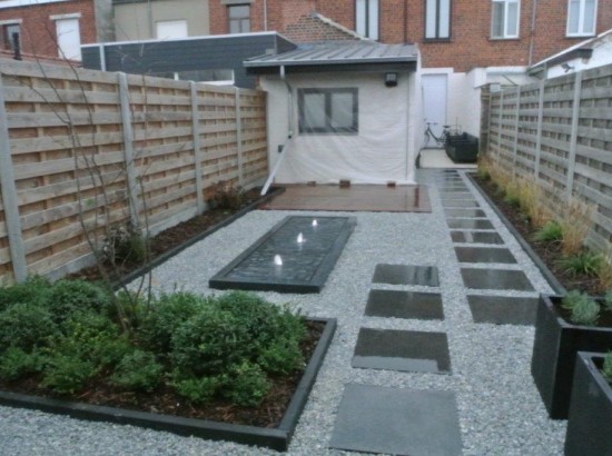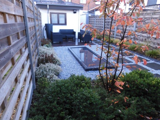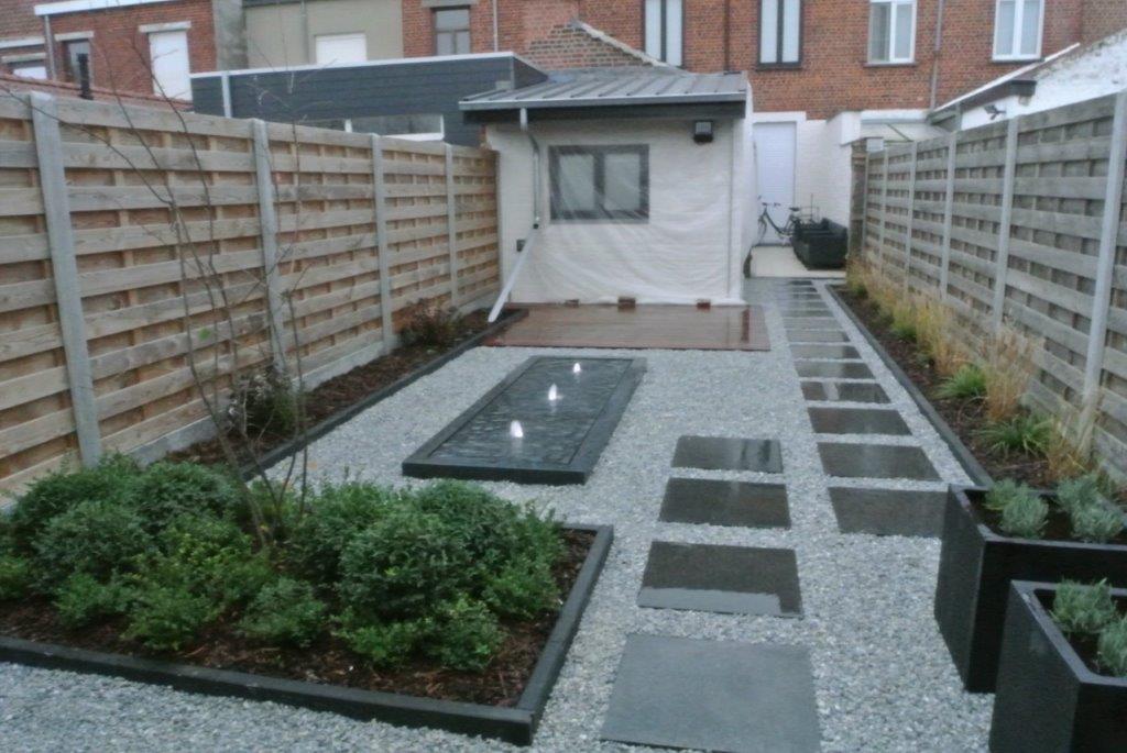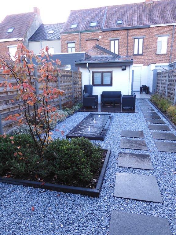 Kleine moderne tuin met watertafel. te HEULE