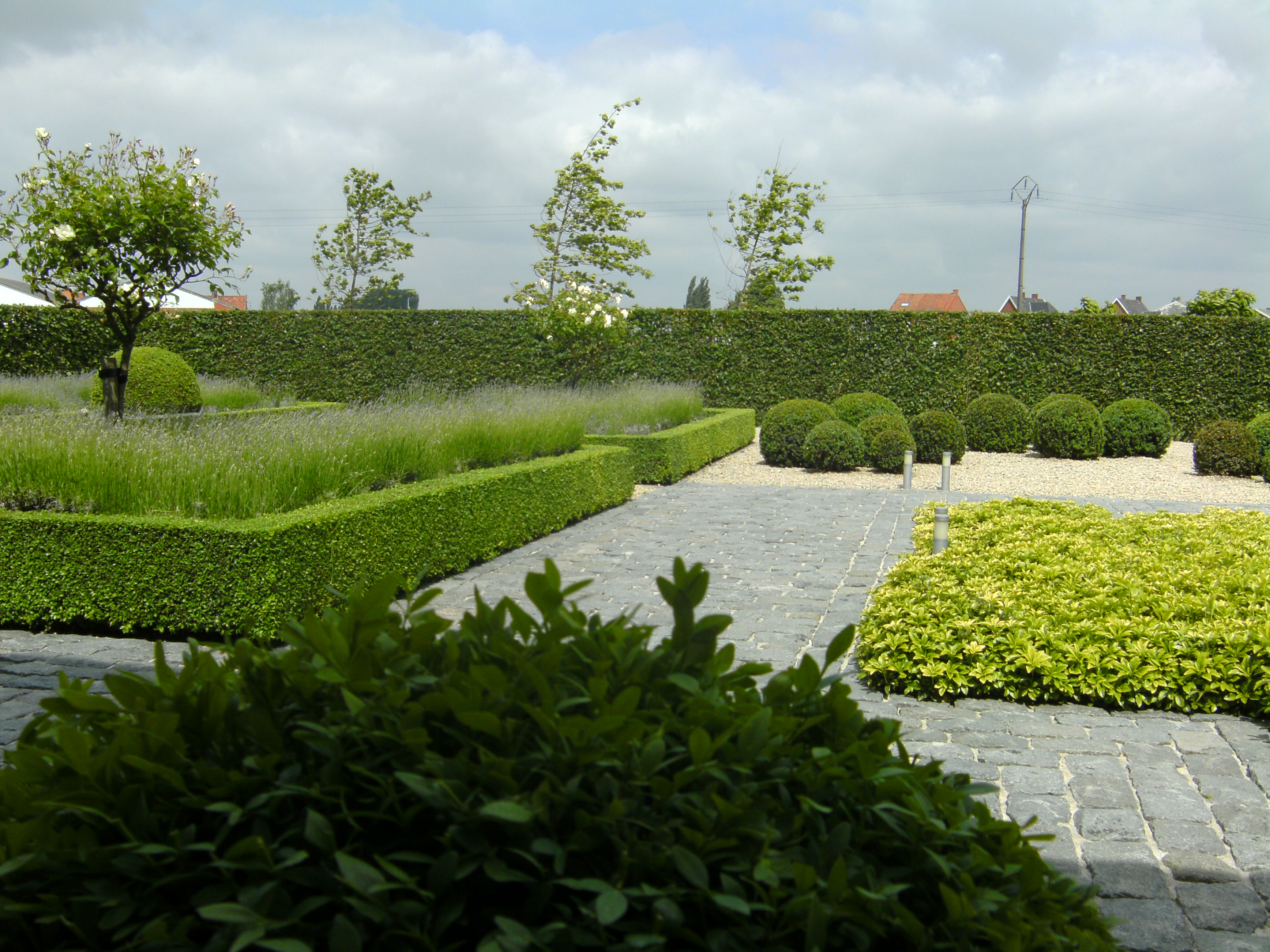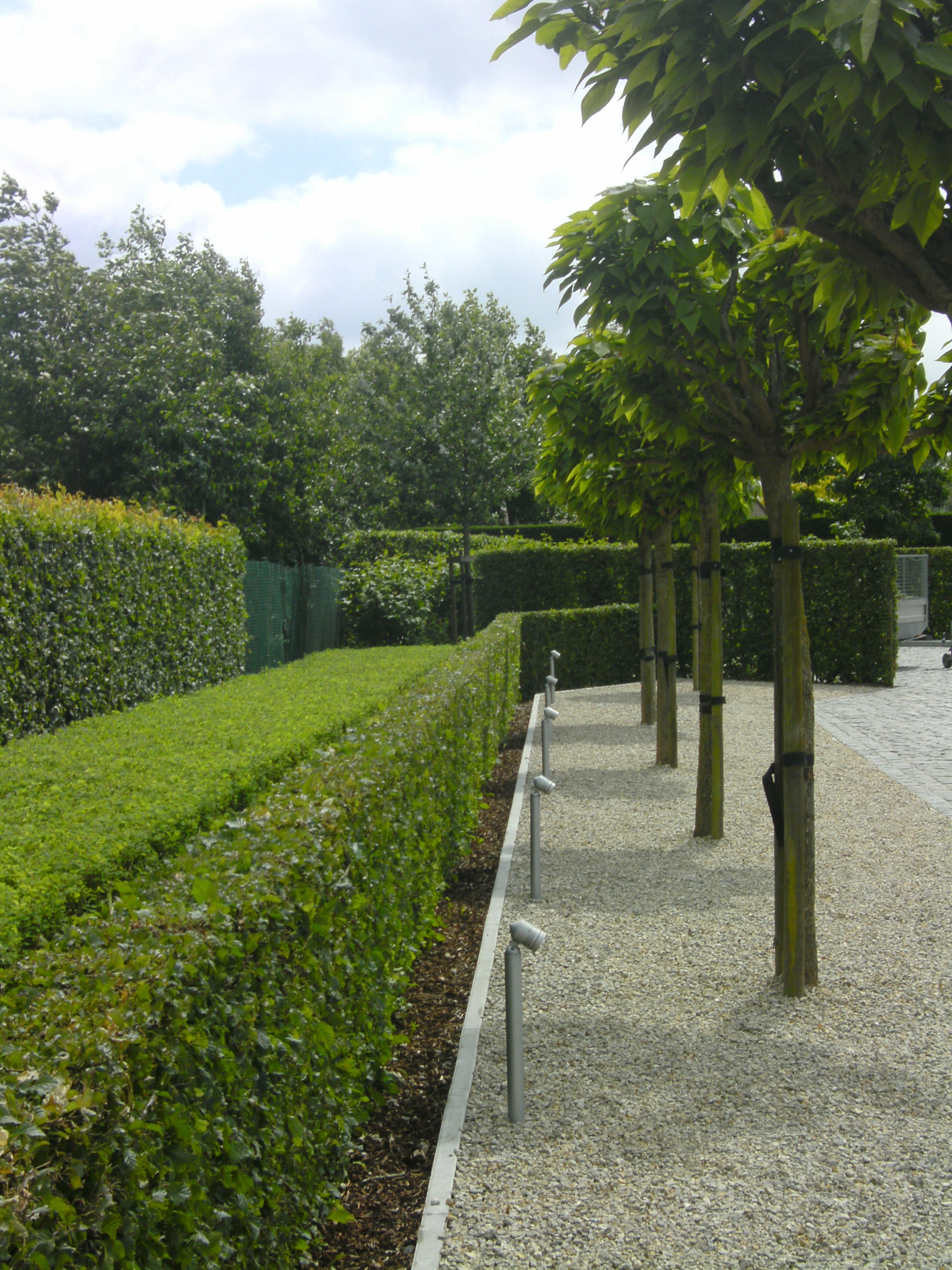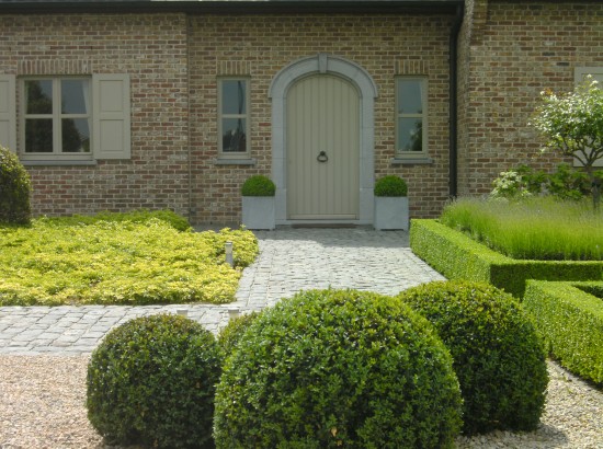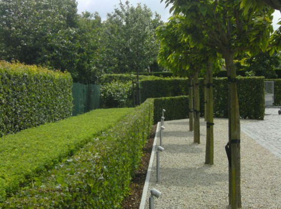 Villa met mooie oprit in zweedse kasseien,beukenhagen en buxusmassieven.