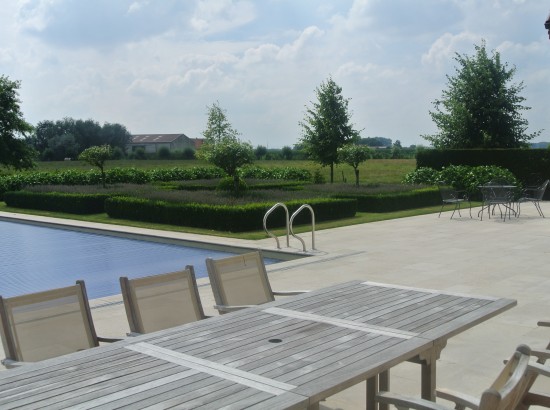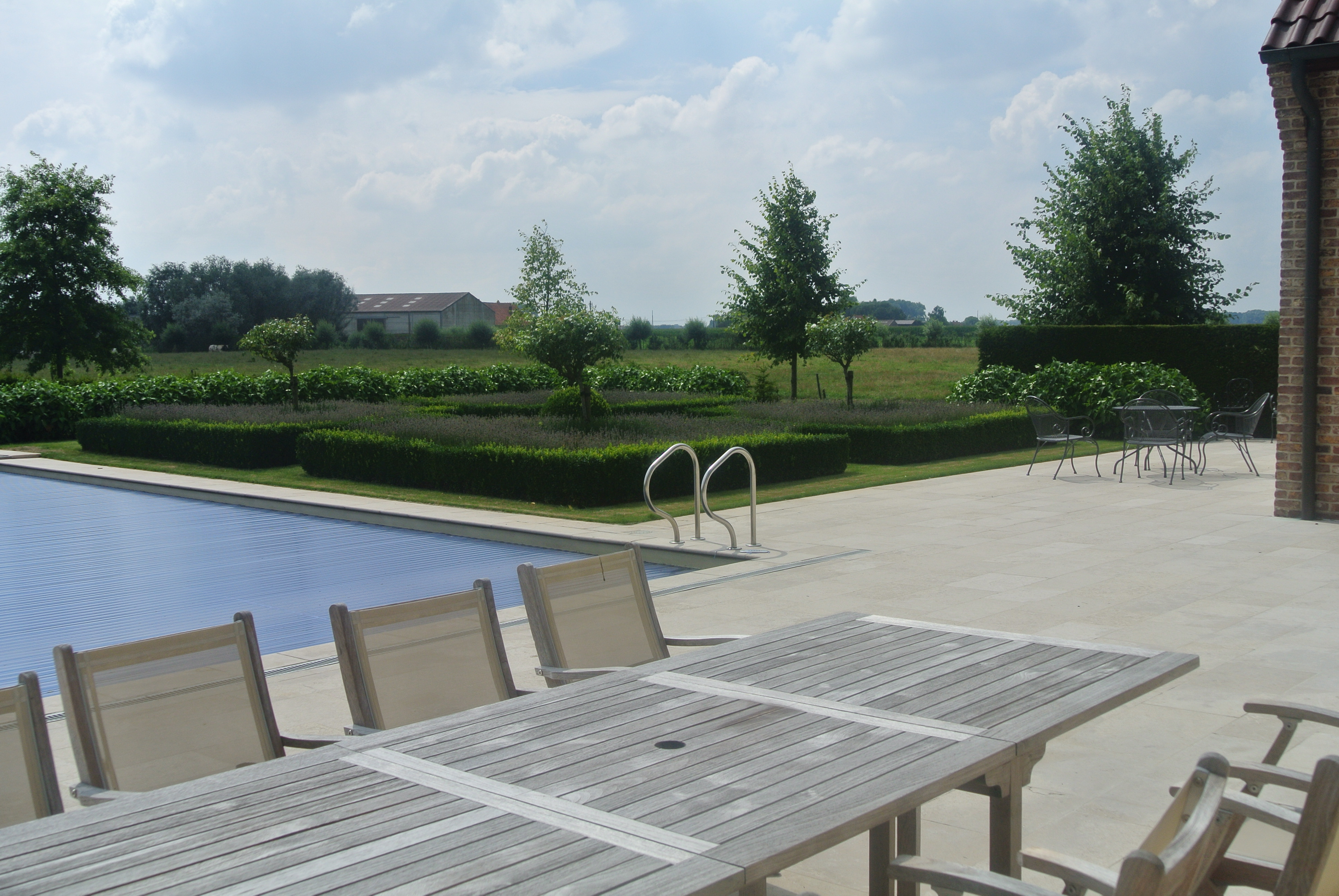 Daarnaast zien we nog het zwembad met een ruim terras.