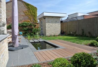 Strakke tuin met waterpartij te MENEN